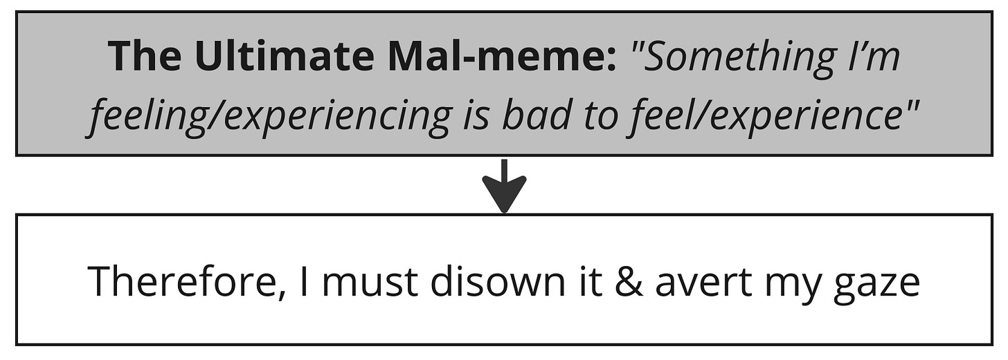 The ultimate upstream mal-meme here is “something I’m feeling/experiencing is bad to feel/experience”.