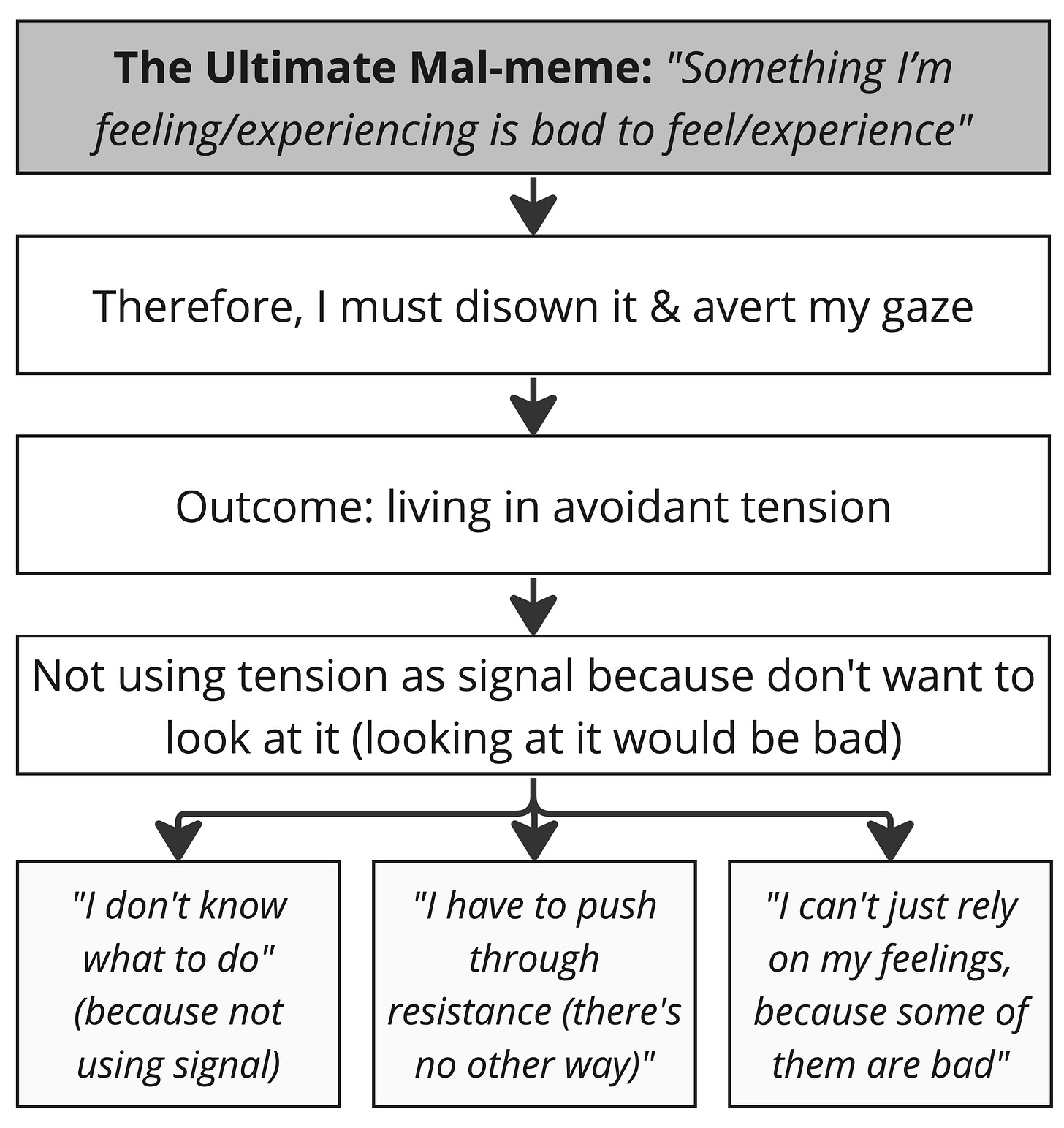 Next downstream mal-meme: "I must disown feelings, not look at certain ones"